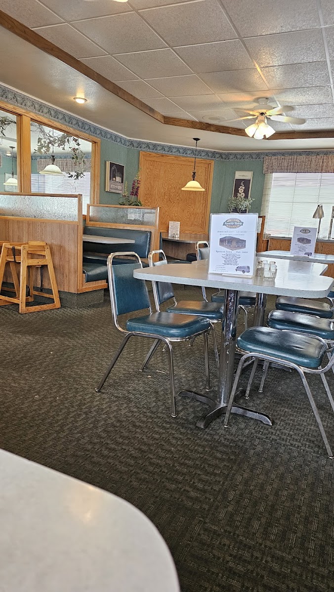 Believe it or not, we came from Ontario to Spencer to see the public library, where Dewey the cat as rescued 35 years ago. Decided to stay the night in town, and this sounded like a place we'd like to eat at. It would have been good, but unremarkable, except for the experience that our waitress provided. I'm sorry not to have caught your name, you're new (3 weeks) and was previously employed at a trick stop and currently have a pregnant kitty cat. This lady was a real character...perhaps for some tastes a bit too chatty, but we liked her down to earth friendliness and she made the evening for us. The food was great too! Good price, good selection and fast. Hot beef sandwich with mashed potatoes and gravy, and a burrito platter. So good! Hey, thanks a lot for making our evening interesting! I hope you find a good home for the kittens. :)