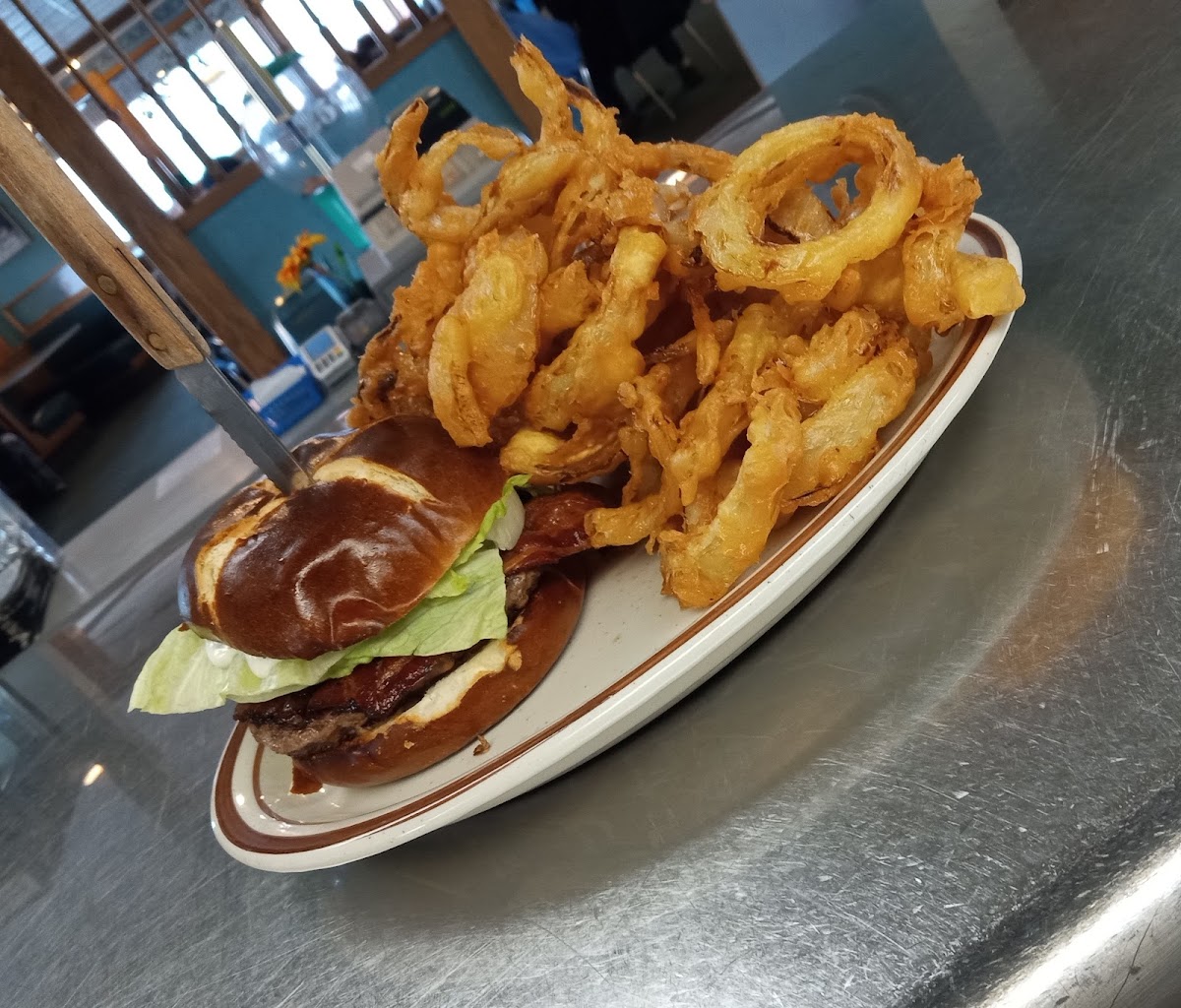 Such a comfortable diner-like setting with table service. All-you-can-eat fish during Lent and Sunday buffets too. The onion rings are amazing! Lots of midwest fried deliciousness.